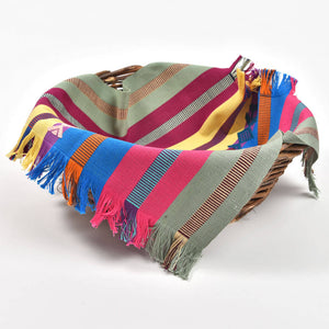 Celebration basket liners are handwoven on the traditional backstrap loom. Truly one-of-a-kind treasures, the center motifs express the Maya view of the world that everything is interconnected, different threads of the same fabric, and that nature and cosmic unity exists through diversity. Geometric motifs represent the relation among the universe, the earth, and humanity. Motifs depicting plants and flowers reflect our relationship with nature.