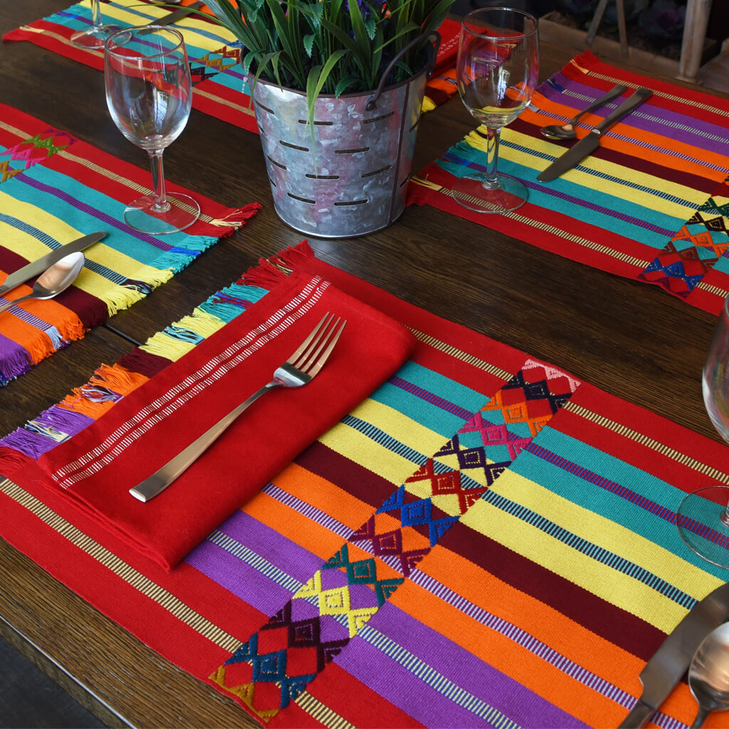 Mayamam Weavers' Celebration collection celebrates the artistic heritage of Maya weavers, handed down from mother to daughter. Truly heirlooms, you'll find vibrantly brocade-embroidered table linens, basket napkins, and spectacular pillow shells, along with colorful coasters. All have been hand woven on the traditional backstrap loom by a women’s weaving cooperative in Guatemala. The embroidery motifs have been drawn from daily life, from nature, and from Maya Mam cultural symbols.