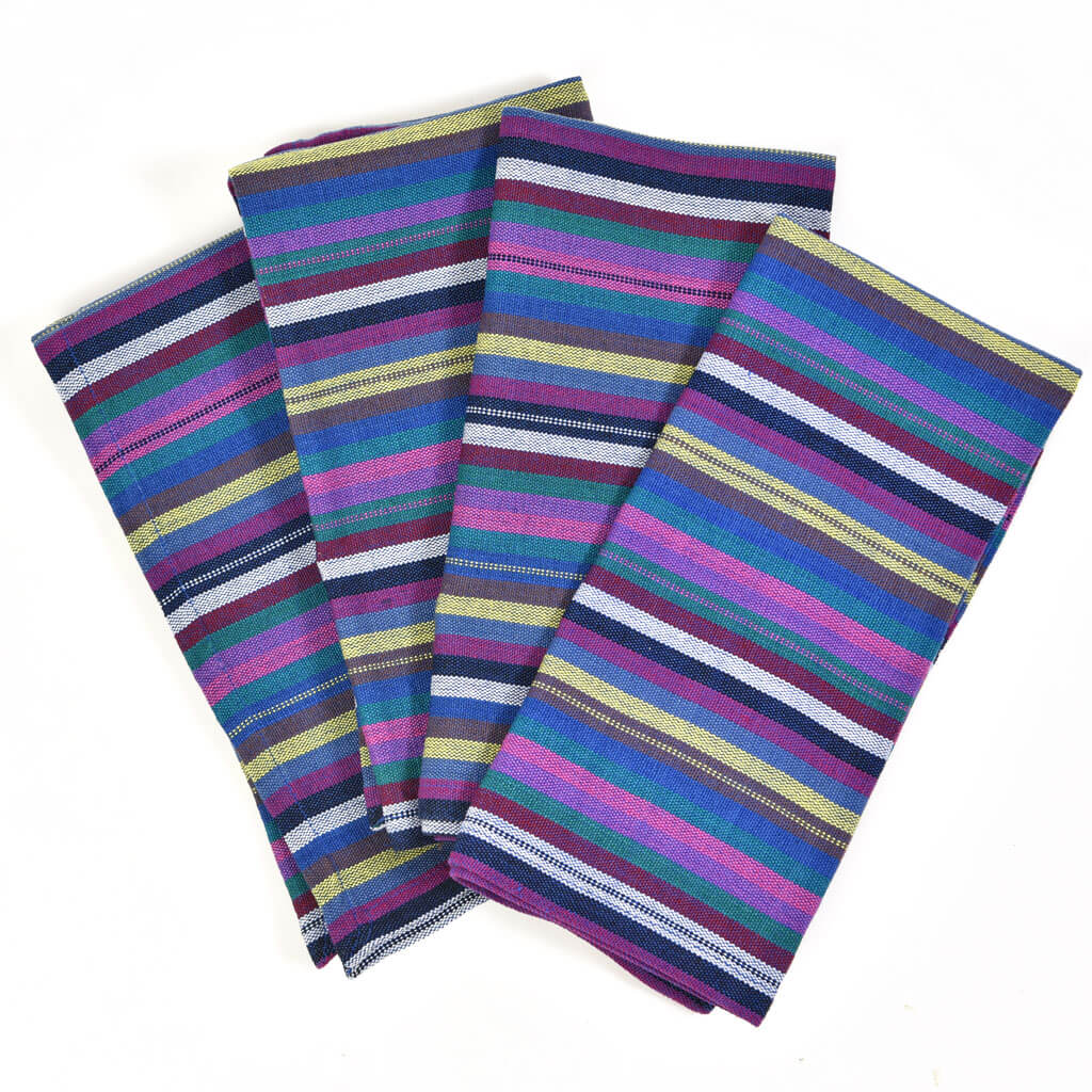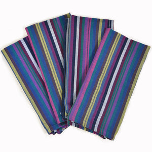 Hues of blues in our Cobalt Stripe table napkins. They are generously sized at 20" x 20" and feature mitered corners. Handwoven of 100% cotton they will last you through many meals. Add variety to your table by choosing which direction to fold them.