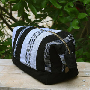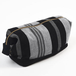 Hand Woven Toiletry Bag | Black & Gray Stripes