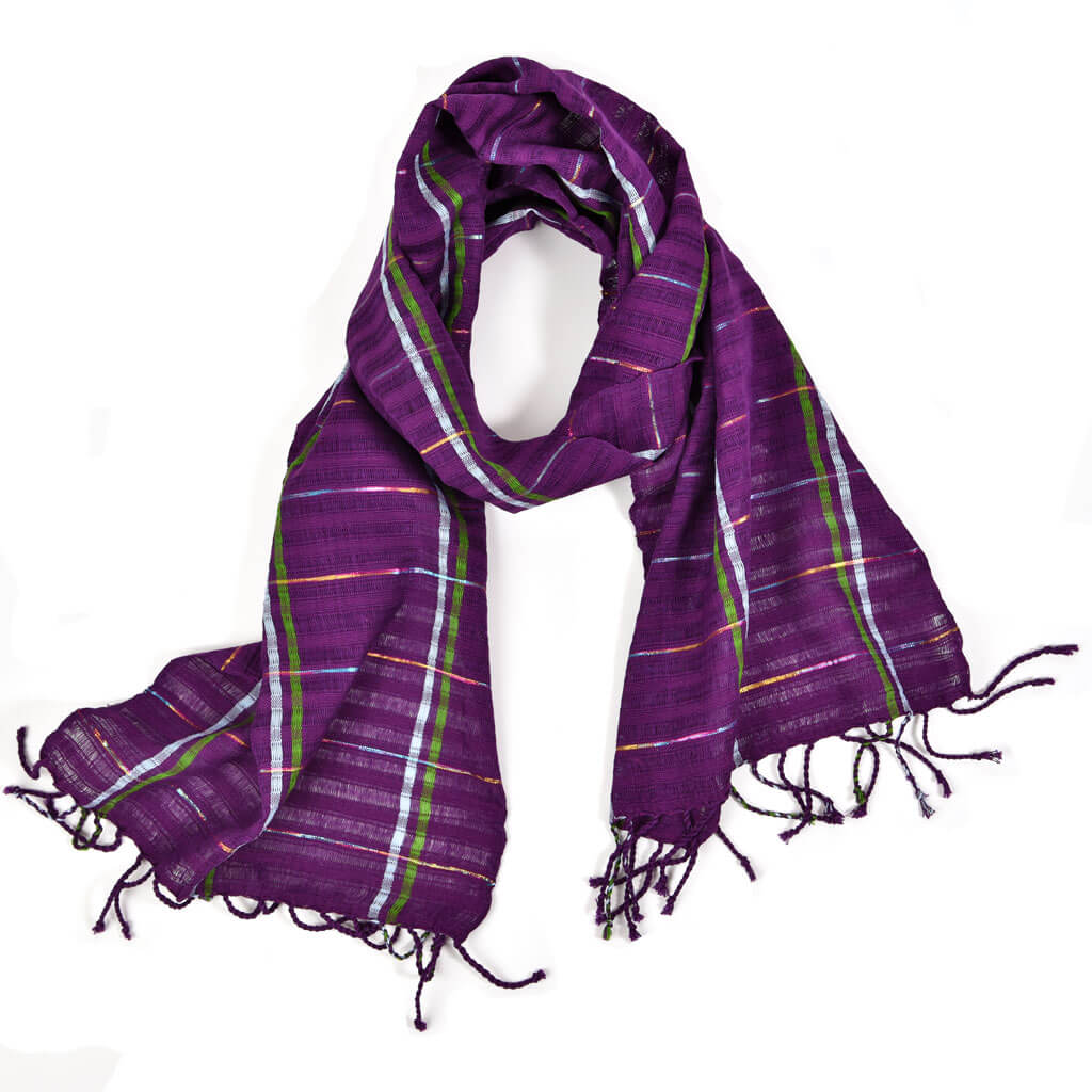 The indispensable accessory, our scarves are available in three styles -- lightweight windowpane weave in fringed or infinity style, or the warmer weight diamond weave Cozy Cotton Scarf. All styles are hand woven in 100% cotton by the Maya Mam Weaving cooperative in Guatemala. The windowpane weaves must be dry cleaned (water makes the cotton fill in the airy parts of the weave) but the Cozy Cotton scarves are machine washable.