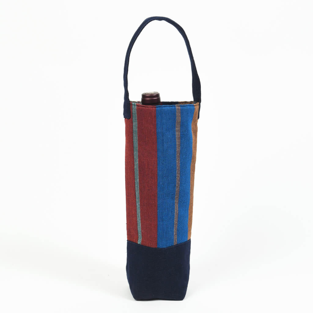 Hand Woven Wine Bottle Tote | Single in Wide Indigo Stripe
