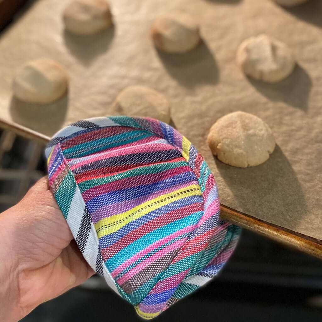 Hand Woven Mini Oven Mitt | Soft Multi Stripes