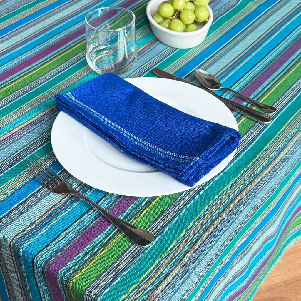 Hand Woven Cuadritos Table Runner | Blue Corn