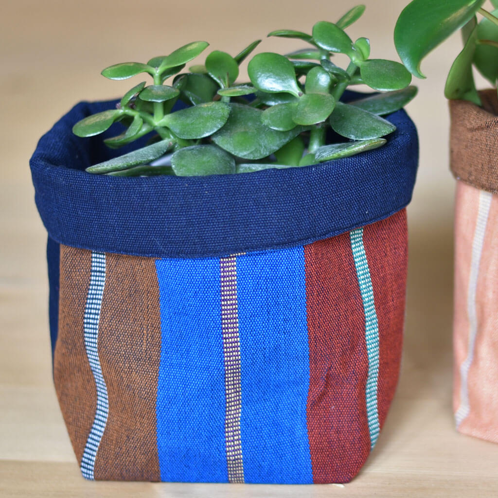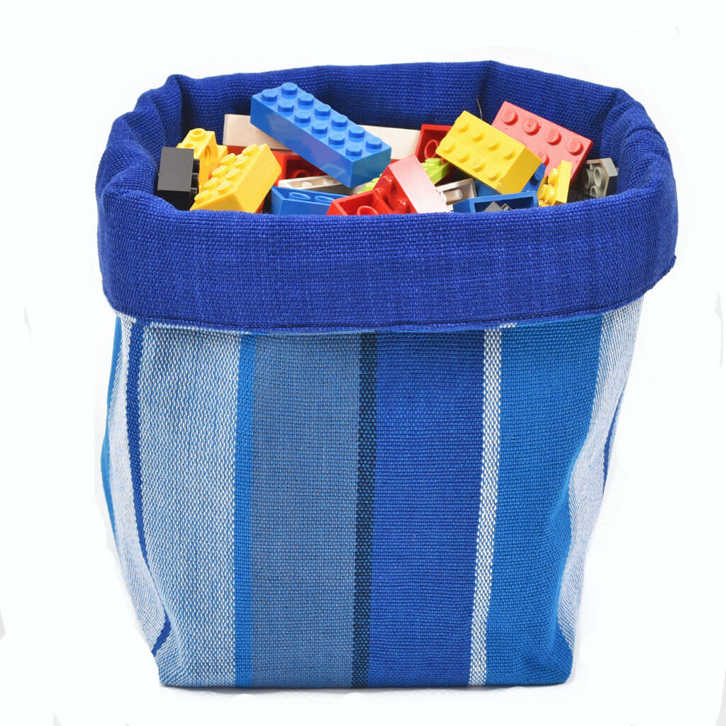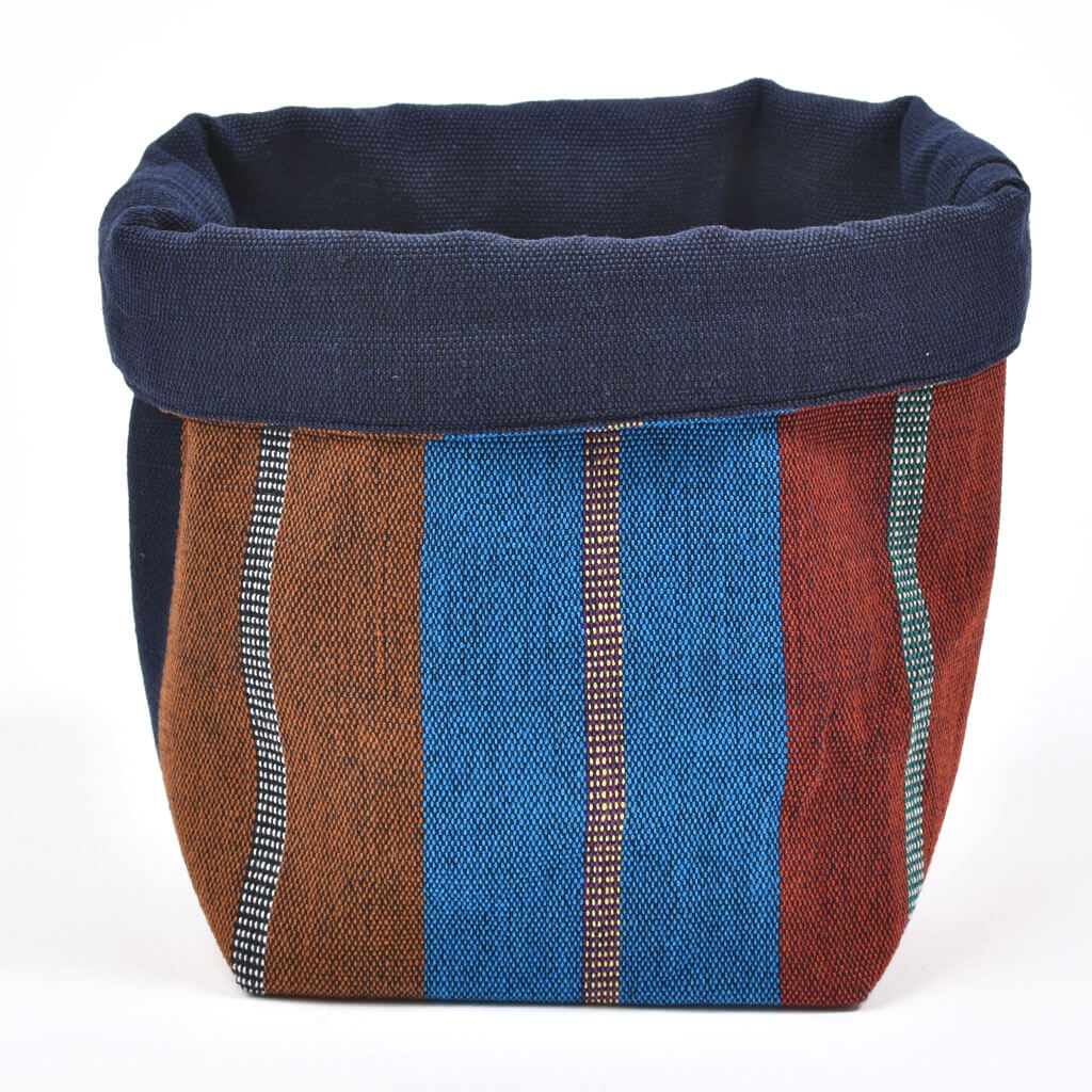 Handwoven Fabric Storage Basket | Wide Indigo Stripe