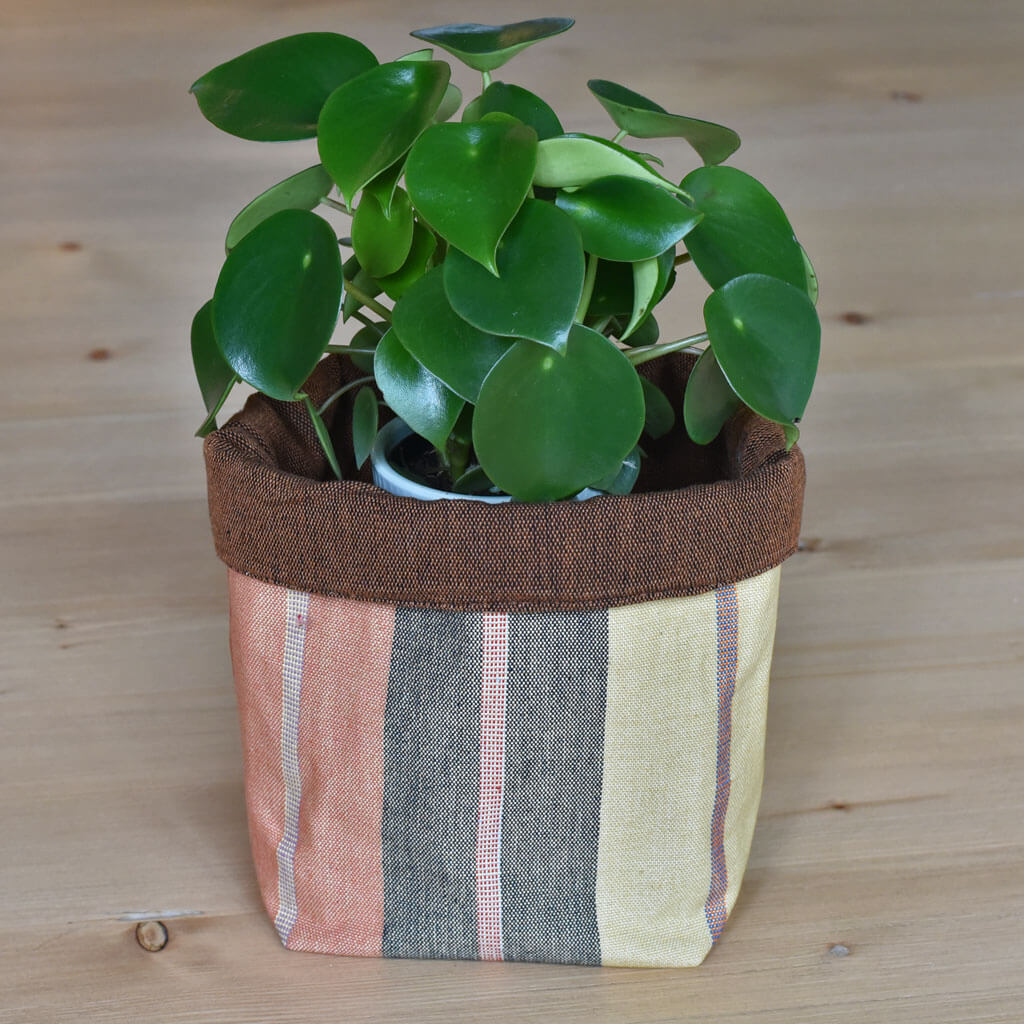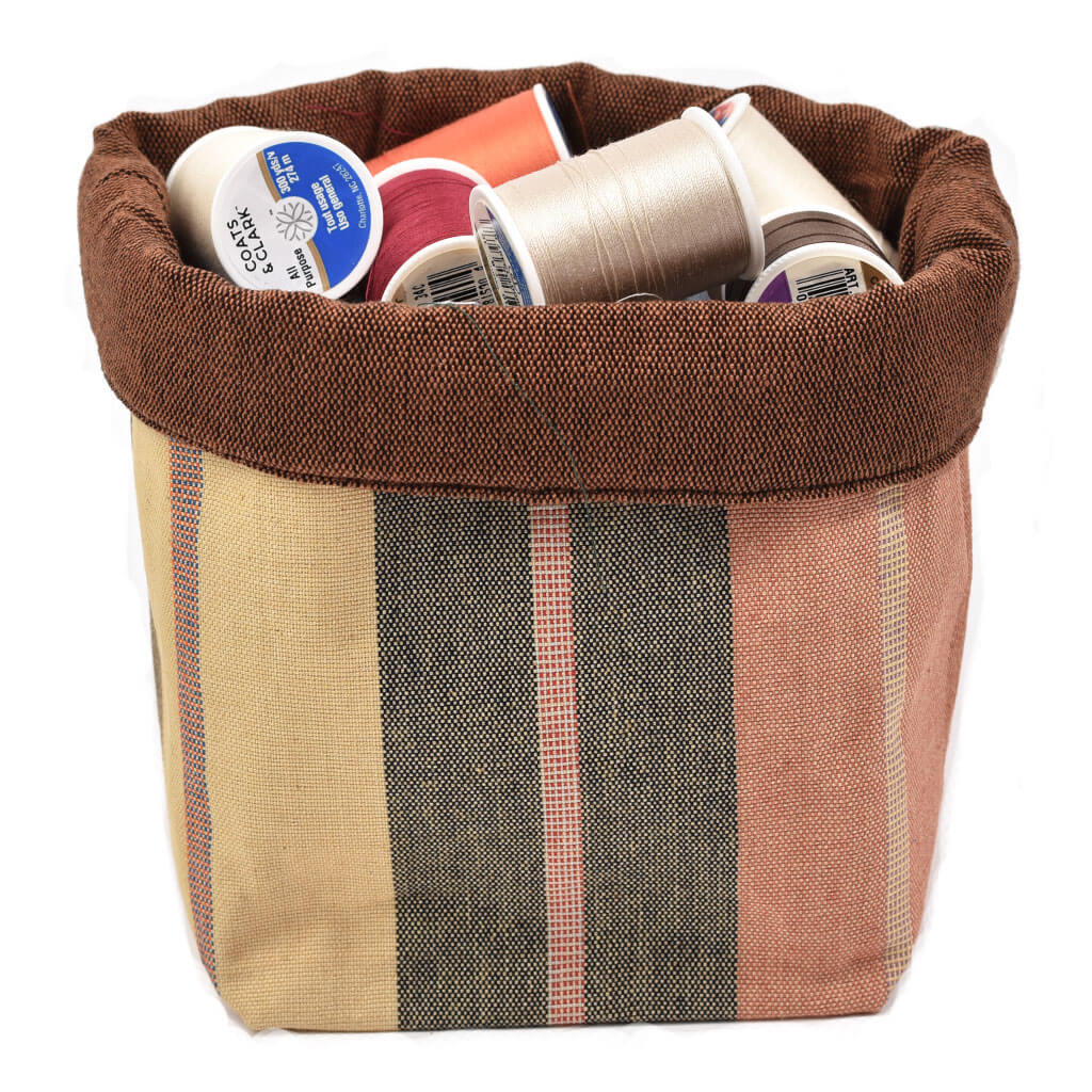 Handwoven Fabric Storage Basket | Wide Caramel Stripe