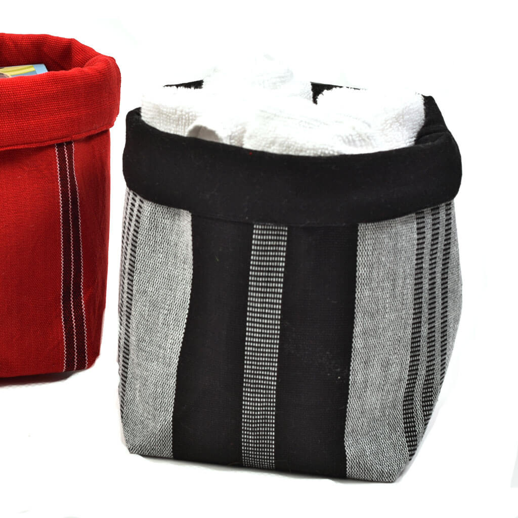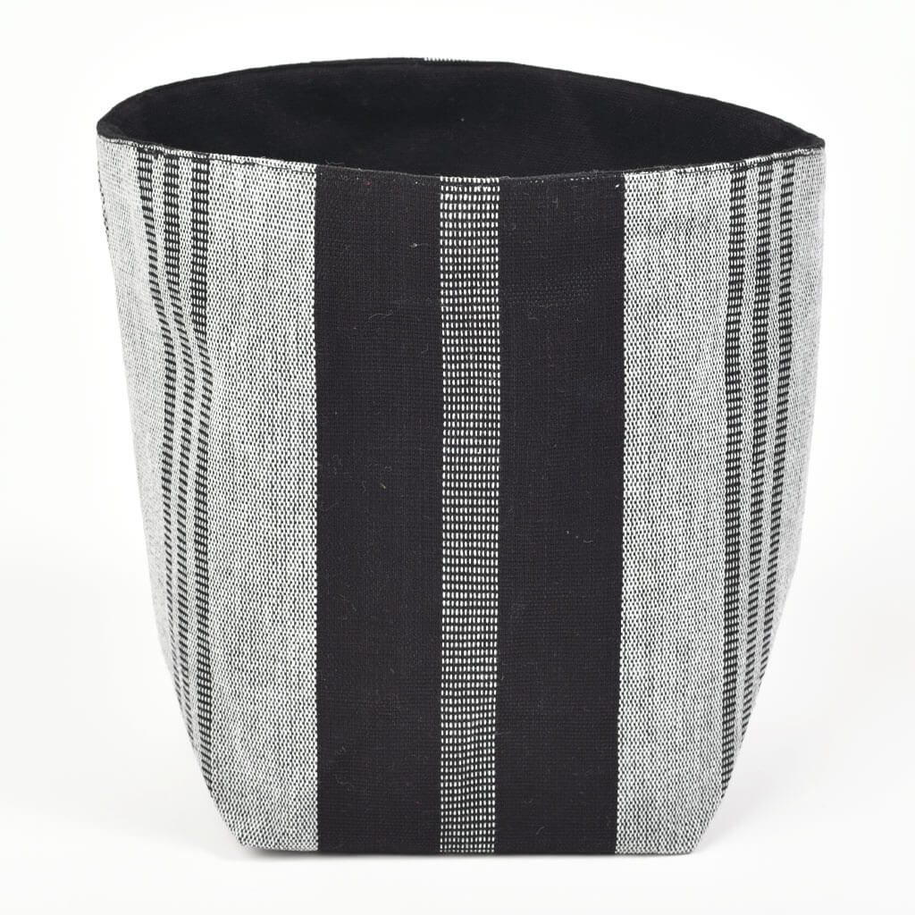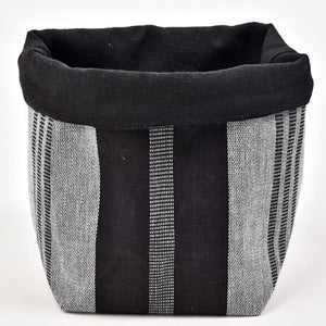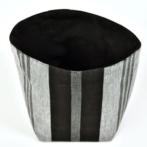 Handwoven Fabric Storage Basket | Black & Gray Stripes