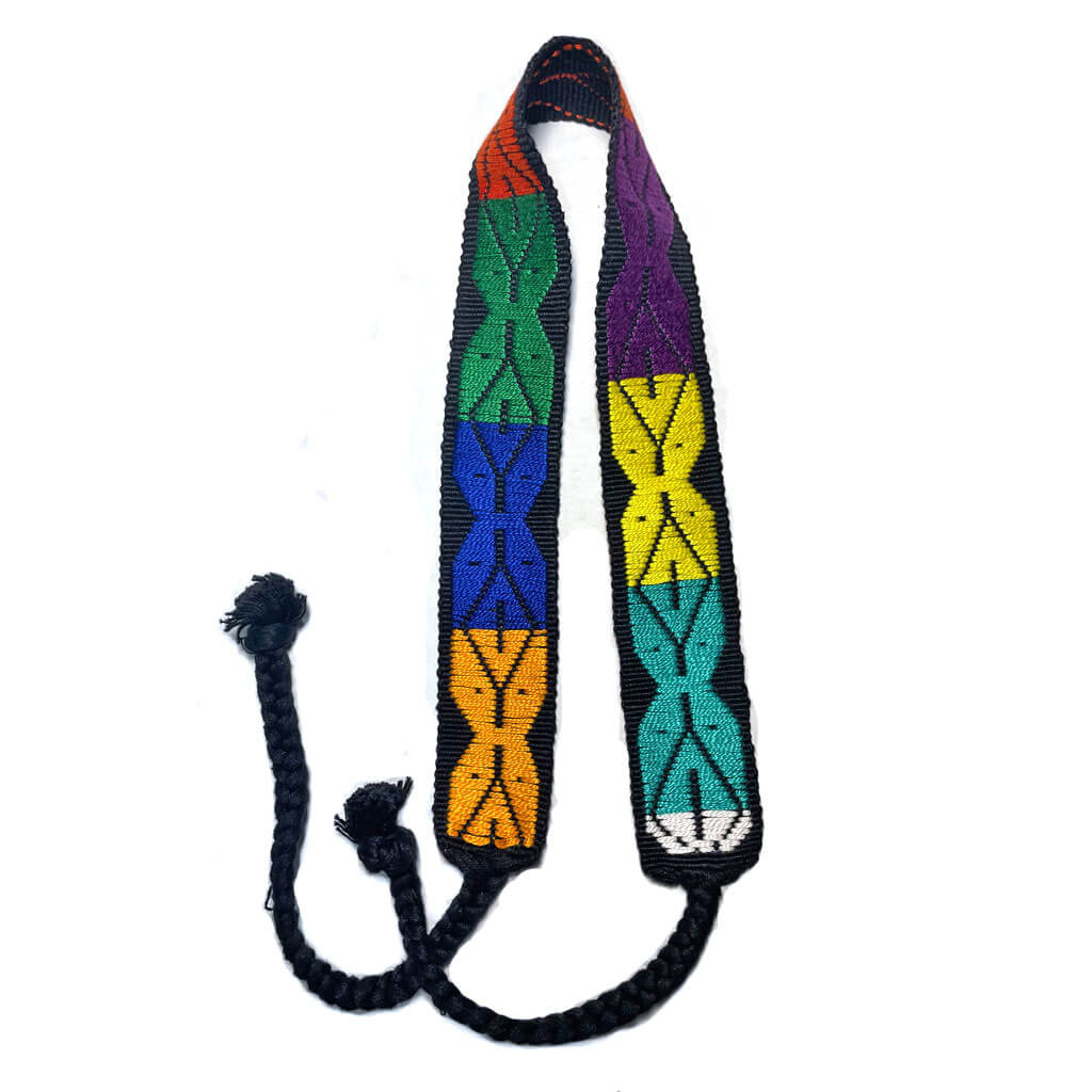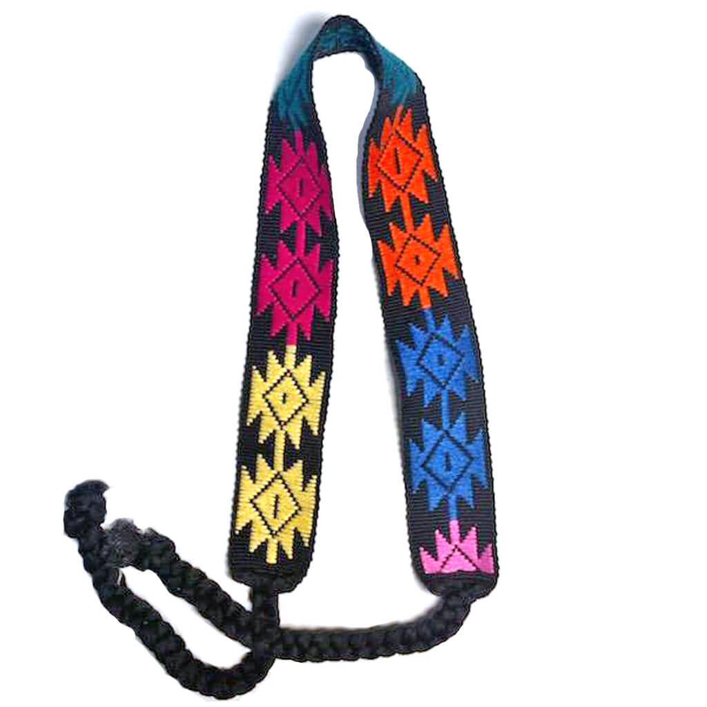 One of a kind embroidered headband woven in black on the backstrap loom...for the young and young at heart! Braided ties make for a comfortable adjustable fit.
