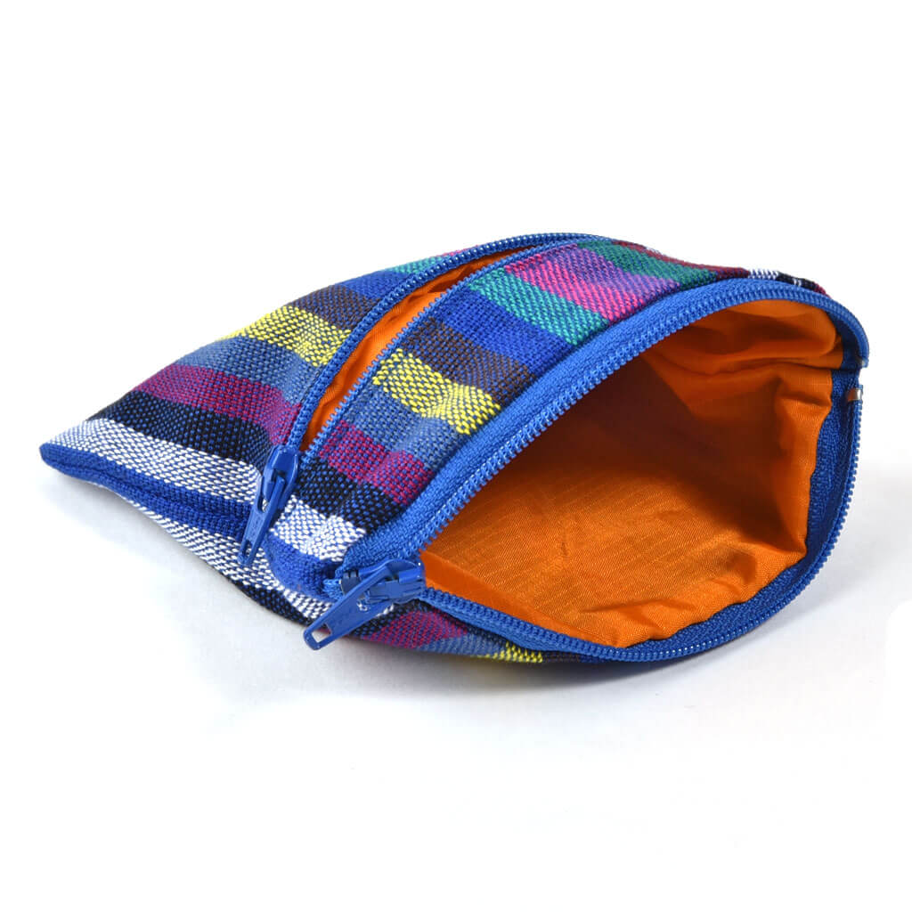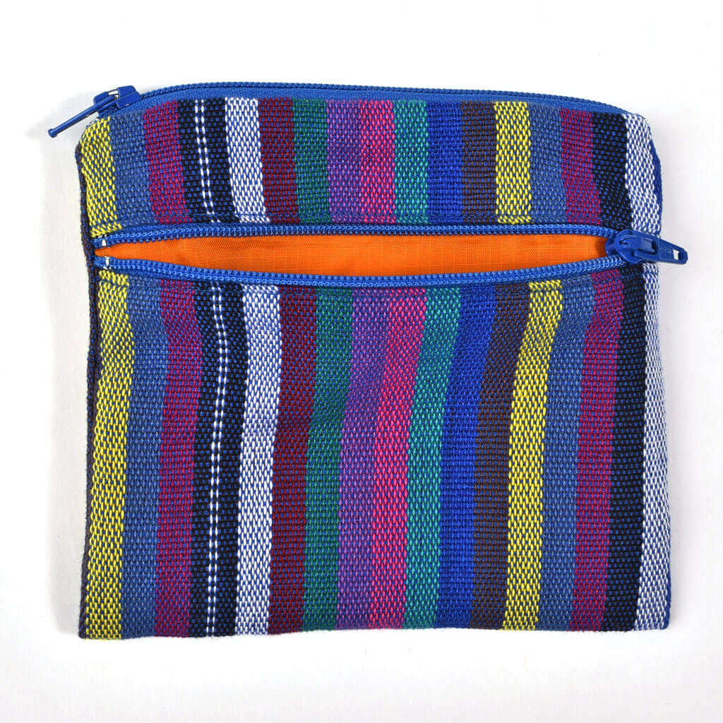 Not your ordinary change purse, our Cobalt Stripe features two zippers and orange lining. Great for change, of course, but also for so many other duties, carrying your memory stick, carrying your business cards, credit cards, to make any of those smallish things easy to find in your bag, backpack, or pocket.  4 1/2 " H x 5" W