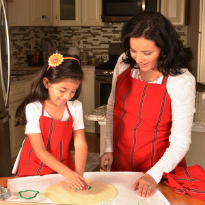 Child & Adult Matching Hand Woven Bib Aprons | Cajola Red Stripes