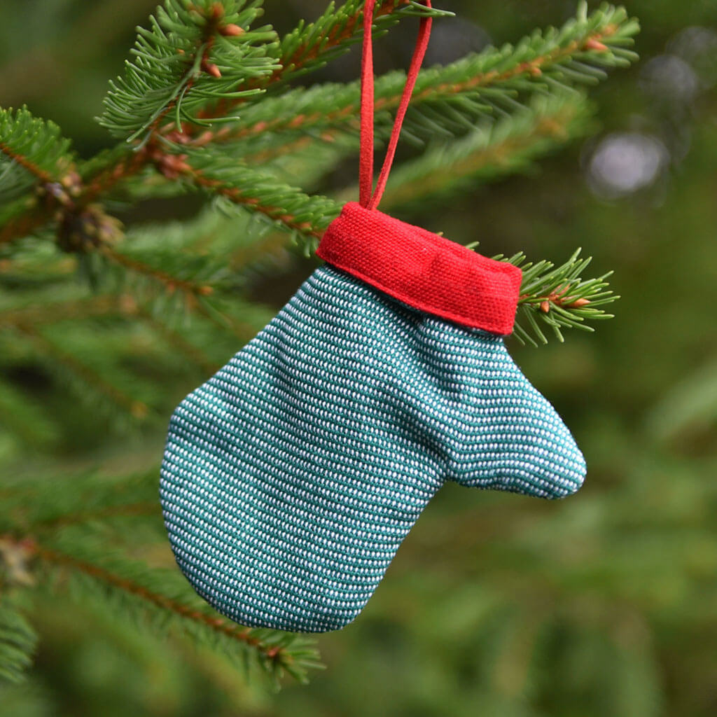 Give your tree another pop of red and green with our mini mitten. Handwoven in 100% cotton.