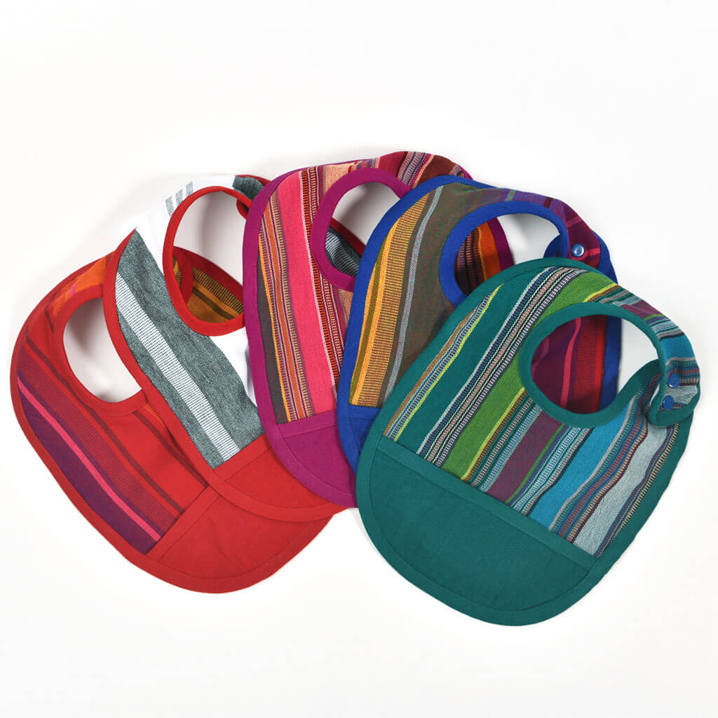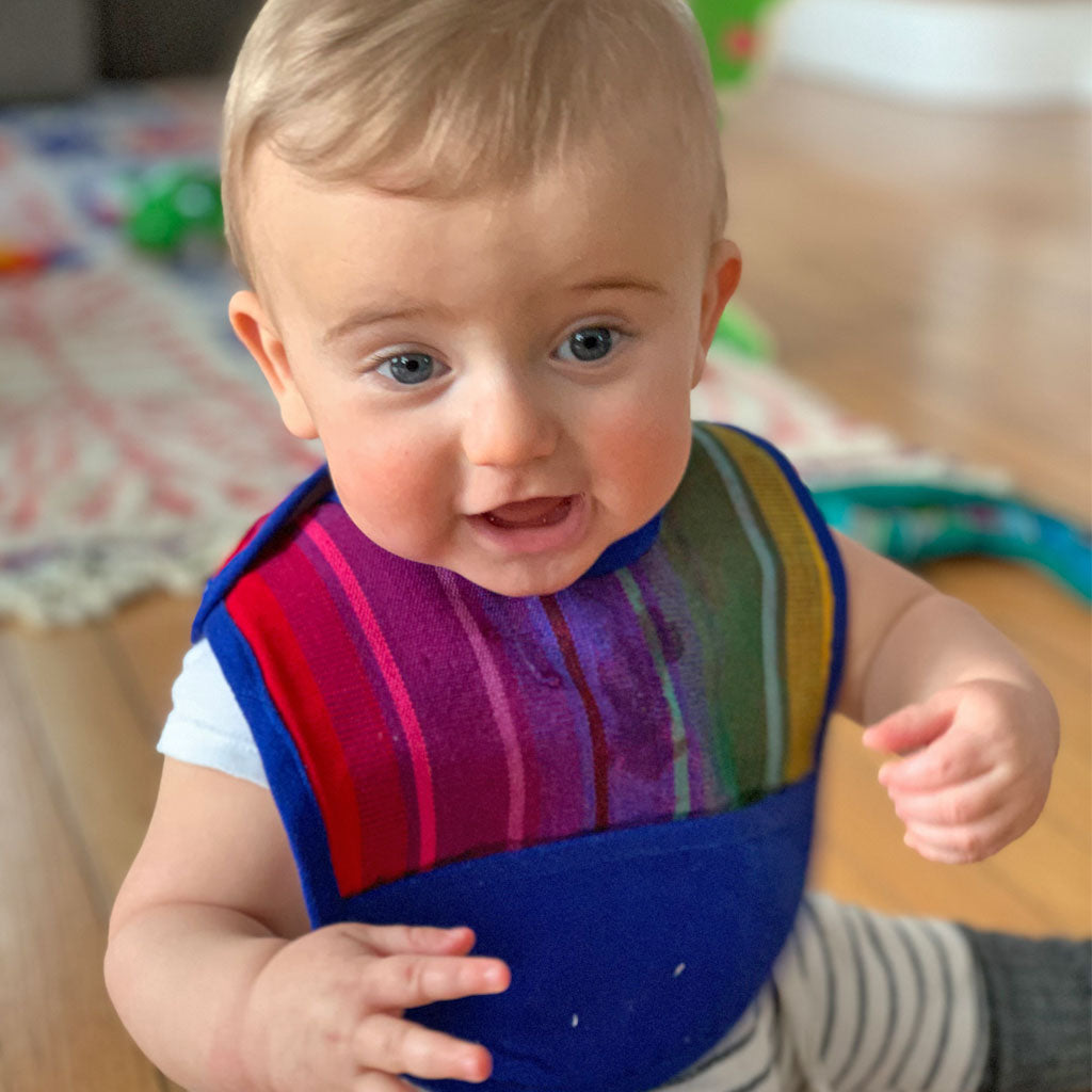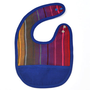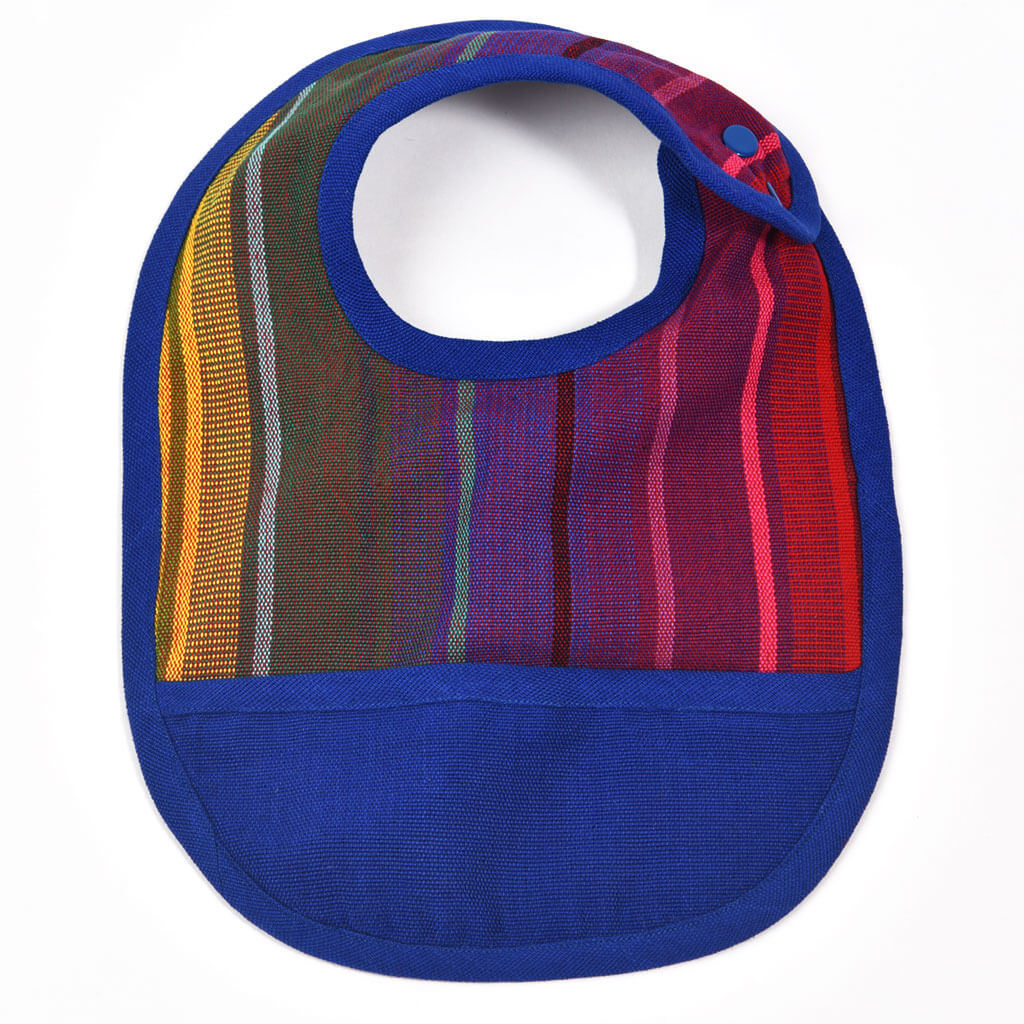 Hand Woven Baby Bib | Blue Rainbow Stripe