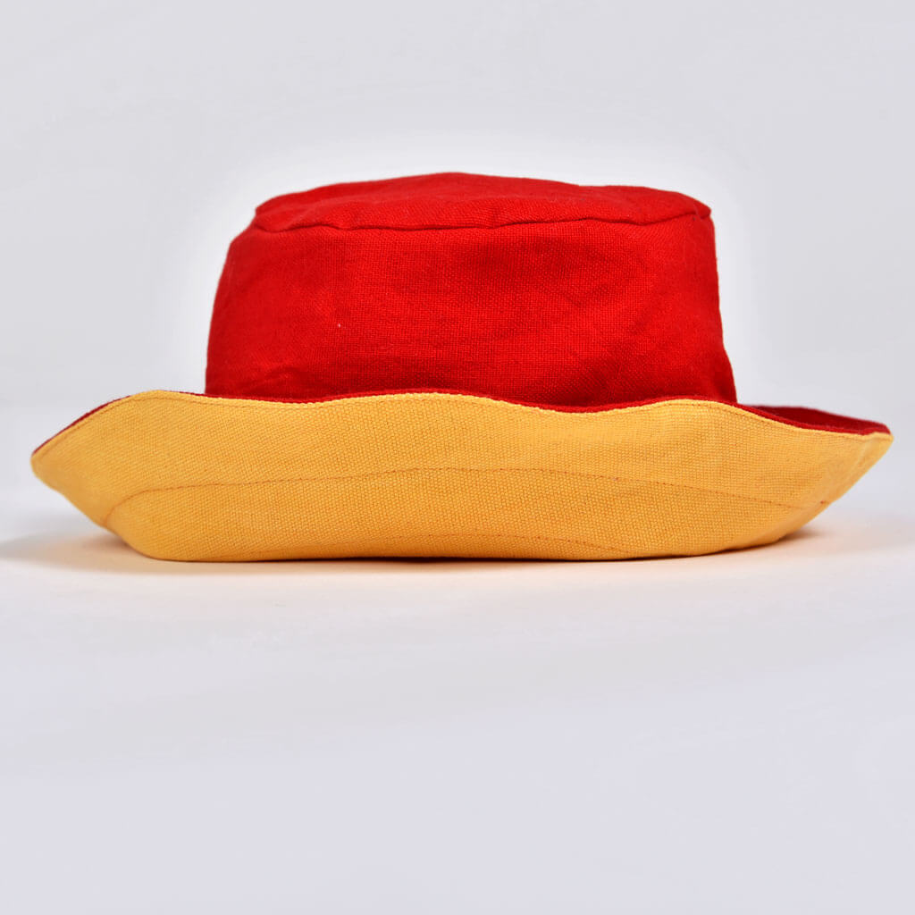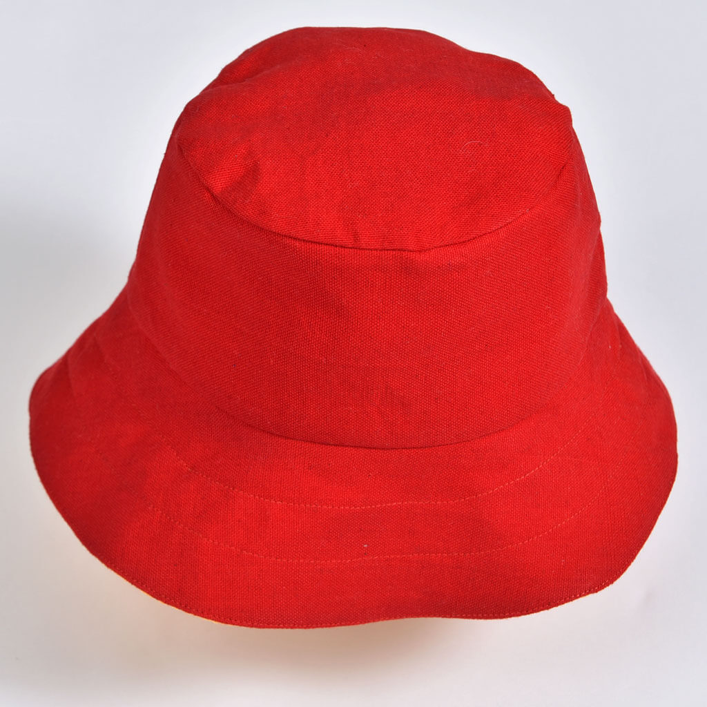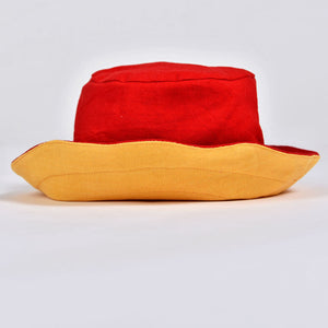 Hand Woven Child Bucket Hat | Bright Red with Apricot "charming accident"