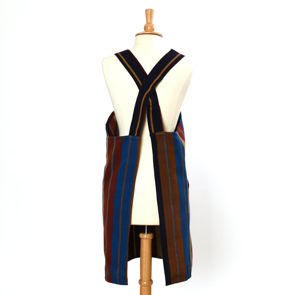 Hand Woven Crossback Apron | Wide Indigo Stripes
