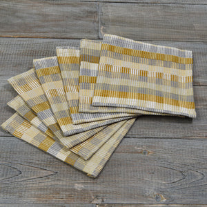 From our popular hand woven Champagne Cuadritos weave, drink coasters to protect your furniture and add style to your entertaining! Makes a great hostess or house warming gift, too. the coasters are  5" squares and easy to wash and dry. 100% cotton.
