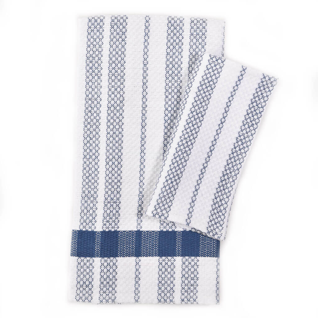 Hand Woven Hache Dish Towel with Dish Cloth | Blue Gray & White Stripes with Border