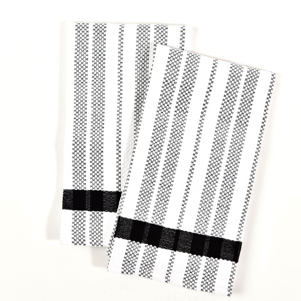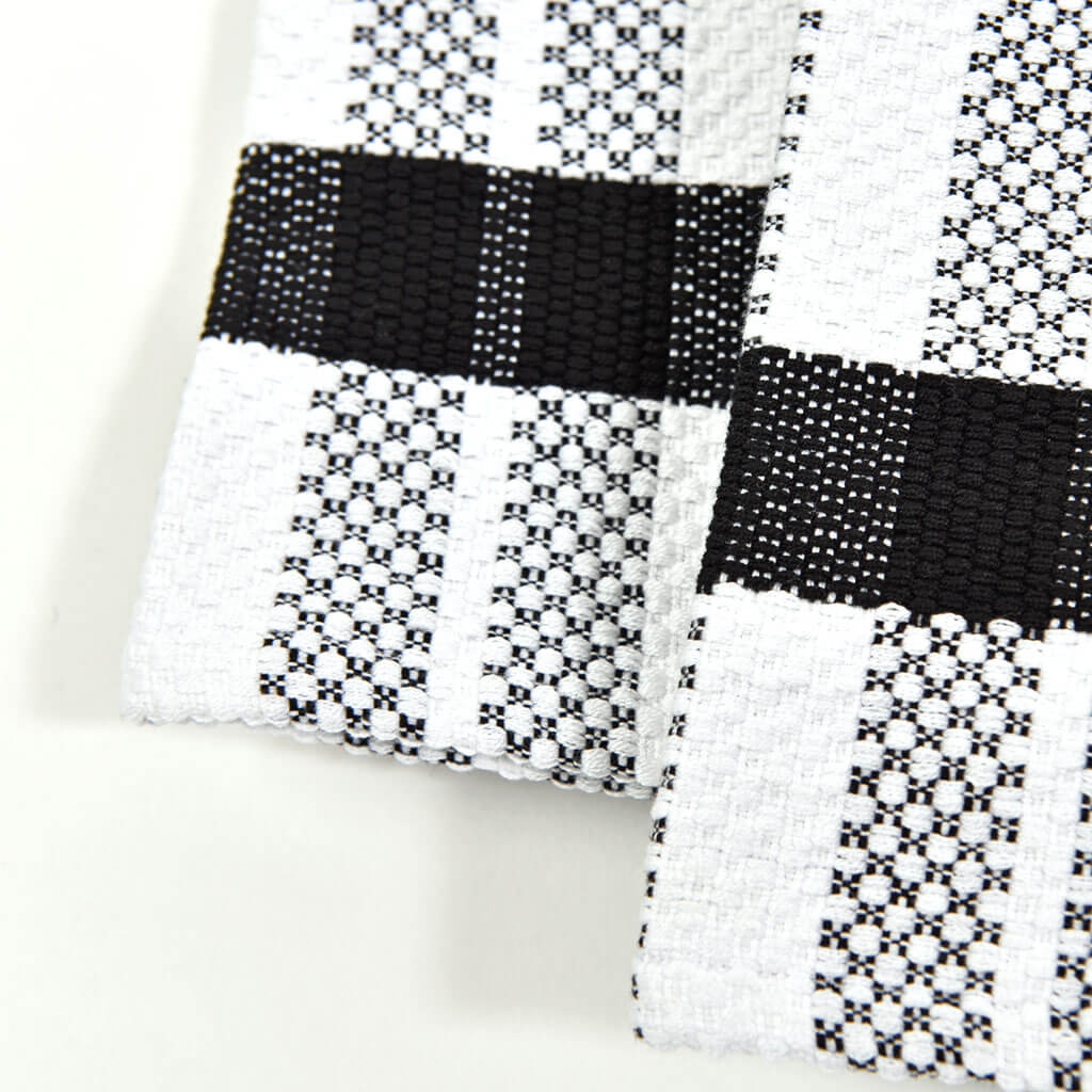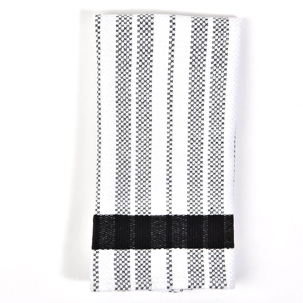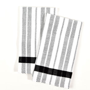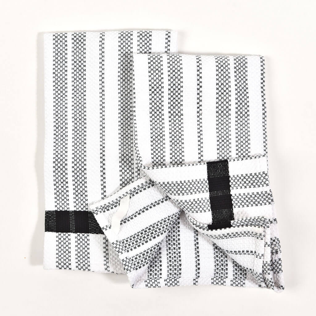 Hand Woven Hache Dish Towels | Black & White Stripes with Black Border