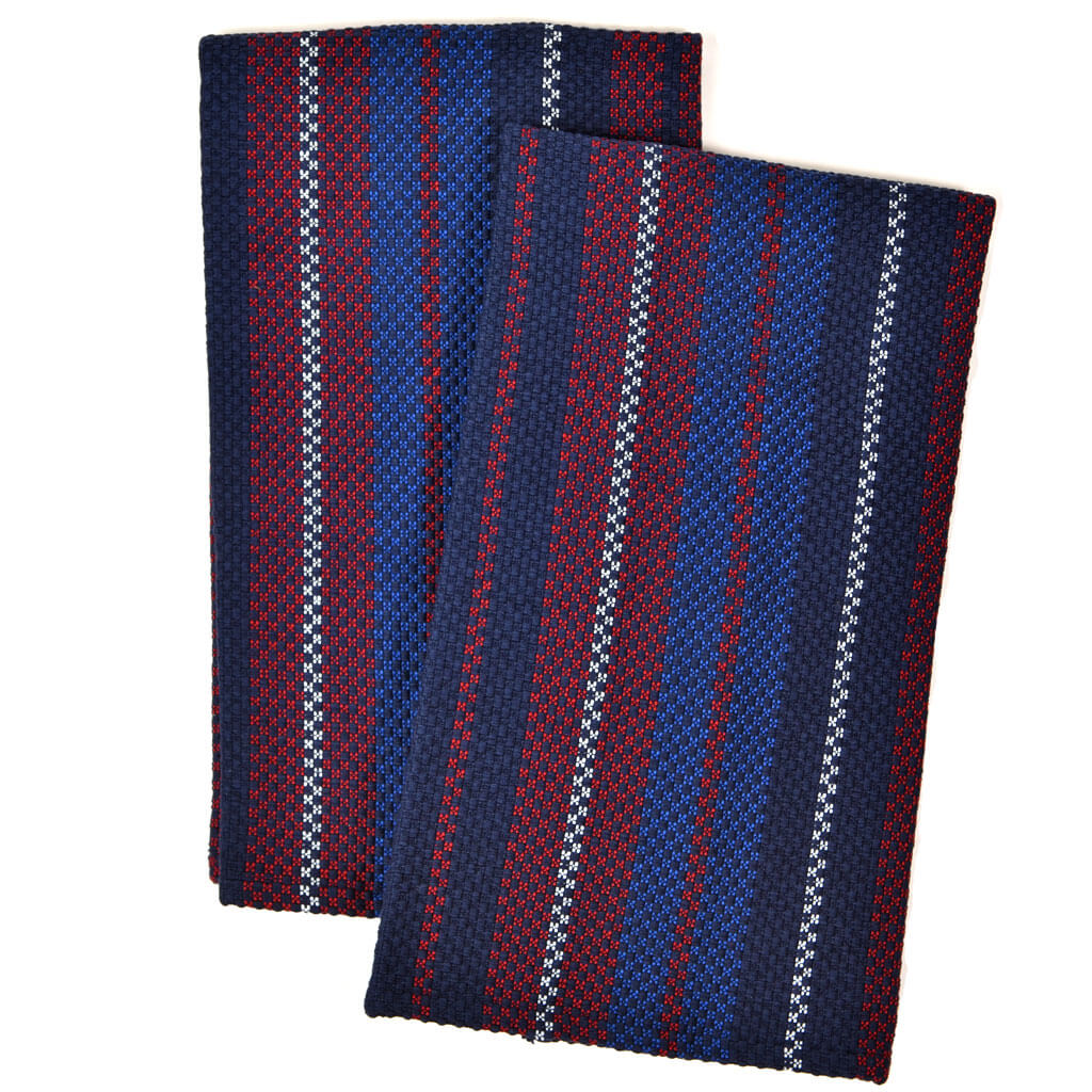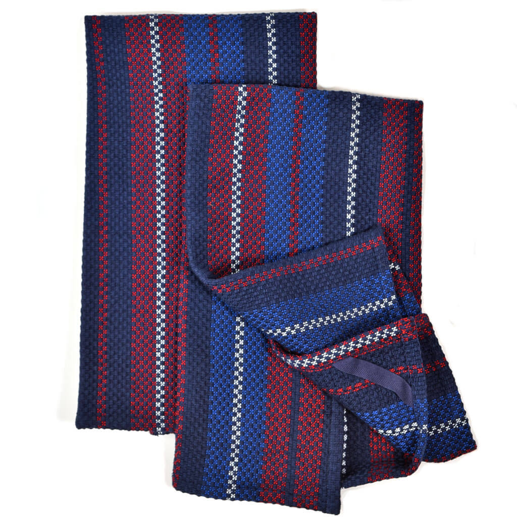 Hand Woven Hache Dish Towels | Red White & Blue Stripes on Blue