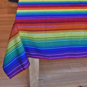 Our popular Rainbow stripe is now available in a tablecloth! Set a festive table and complete the look with Rainbow Stripe Napkins or Celebration Red Napkins. Hand woven in 100% cotton.  57" x 64" with mitered corners. Easy care wash & dry.